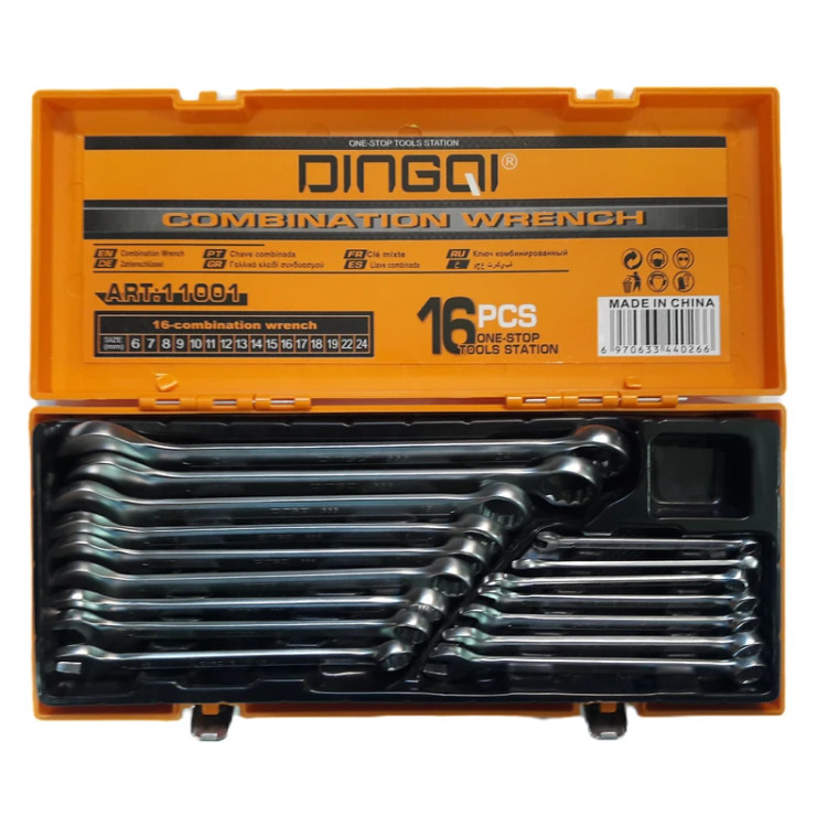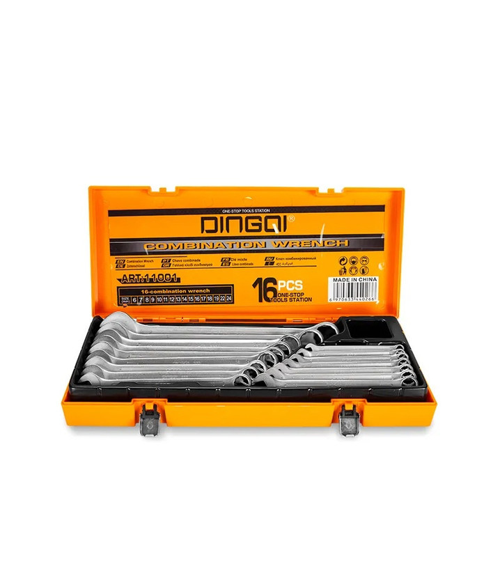 ست آچار صنعتی 16 عددی 6تا24 یک سر تخت و رینگی دینگی DINGQI مدل 11001