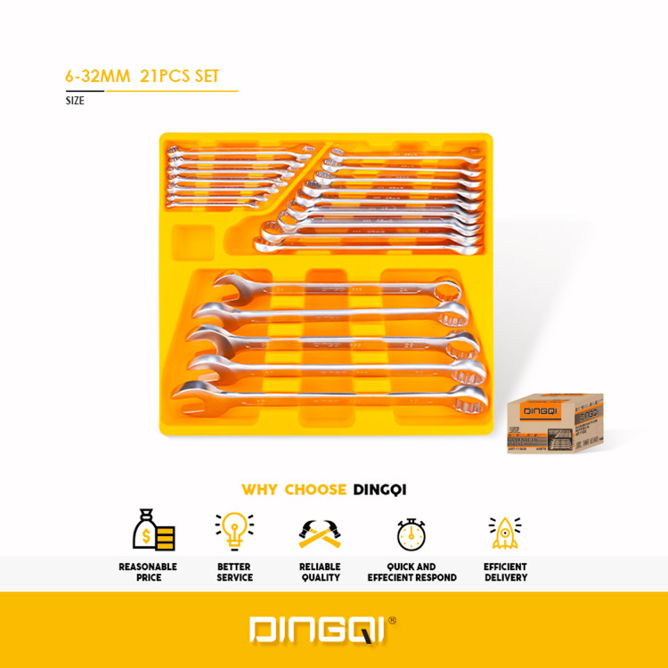 ست 21عددی آچار فوق قوی یک سر تخت یک سر رینگی دینگشی مدل 11002 – DINGQI ART