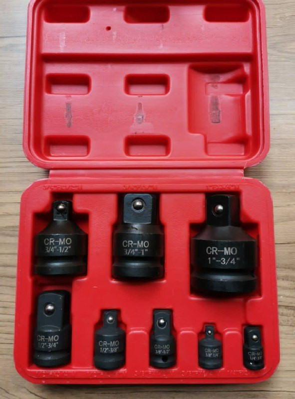 Box: تعداد مجموعه ۸ عددی متعلقات کیف پلاستیکی قابل حمل سایزبندی ۱ به ۳/۴ ، ۳/۴ به ۱ ، ۳/۴ به ۱/۲ ، ۱/۲ به ۳/۴ ، ۱/۲ به ۳/۸ ، ۳/۸ به ۱/۲ ، ۳/۸ به ۱/۴ ، ۱/۴ به ۳/۸