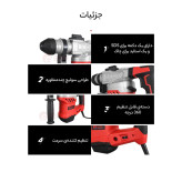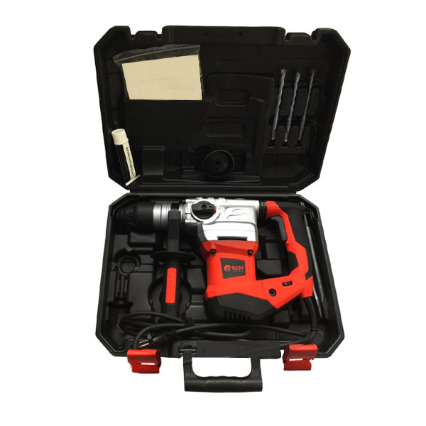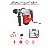 سایر توضیحات دارای کیف BMC مقاوم و همچنین دارای سه عدد مته و دو عدد قلم رایگان با کیفیت جهت سوراخکاری و تخریب استفاده از روکش نرم بر روی دسته جهت جلوگیری از لغرش و نیز جلوگیری از عرق کردن دست دارای سه عدد مته جهت سوراخکاری در بتن و مصالح ساختمانی دارای حالت های دریل کاری چکشی وعملیات تخریب بدنه خوشدست با طراحی ارگونومیک و عایق دوبل دارای دیمر جهت کنترل سرعت عملکرد دستگاه دارای ابزار گیر چهار شیار به همراه کیف حمل BMC ، قلم تخریب نوک تیز و نوک تخت 26 سانت ، سه عدد مته الماسه سایز 8-10-12 ، گردگیر ، گریس ، آچار درب گیربکس، دفترچه راهنما