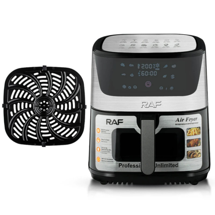 راف یکی از برند های پرطرفدار تولید لوازم برقی خانگی می باشد. از این رو، سرخ کن های برند راف از محبوبیت بالایی برخوردارند. سرخ کن 10لیتری راف مدل R.5351نیز یکی از این سرخ کن ها می باشد که جدای از کیفیت و زیبایی بسیار بالایی که دارد، از قیمت مناسبی نیز برخوردار است. گنجایش سرخ کن مدل R.5351راف به اندازه 10 لیتر می باشد که برای هر غذایی و هر تعداد افرادی مناسب است. سیستم این مدل از سرخ کن به صورت لمسی بر روی جلوی این سرخ کن قرار گرفته شده است. در منوی پیش فرض این سرخ کن 10 برنامه ی آشپزی وجود دارد و علاوه بر آن میتوان به صورت دستی نیز دما و زمان مورد نظر را تنظیم کرد که این ویژگی ها به شما در پخت انواع غذا کمک می کند. از دیگر امکانات این سرخ کن می توان به وجود پنجره در جلوی این سرخ کن و لامپ درون دستگاه اشاره کرد که به شما کمک می کند بتوانید در حین پخت غذا به راحتی بر روی آن نظارت داشته باشید. از دیگر ویژگی های این سرخ کن میتوان به محفظه ی تمام استیل آن اشاره کرد که باعث افزایش طول عمر این سرخ کن در دراز مدت می شود. همچنین به دلیل بدون روغن بودن این سرخ کن ، غذای شما تا 80 درصد کاهش چربی دارند و در دراز مدت به صورت چشم گیری مصرف روغن شما را کاهش میدهد و همچنین زمان پخت شما سریع تر می شود. در مجموع اگر به دنبال یک سرخ کن بدون روغن زیبا، با کیفیت با امکانات فراوان و قیمت مناسب هستید، سرخ کن راف مدل R.5351میتواند گزینه ی بسیار مناسبی برای شما باشید و خیال شما را از بابت داشتن یک سرخ کن با کیفیت برای سالیان سال راحت کند.