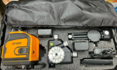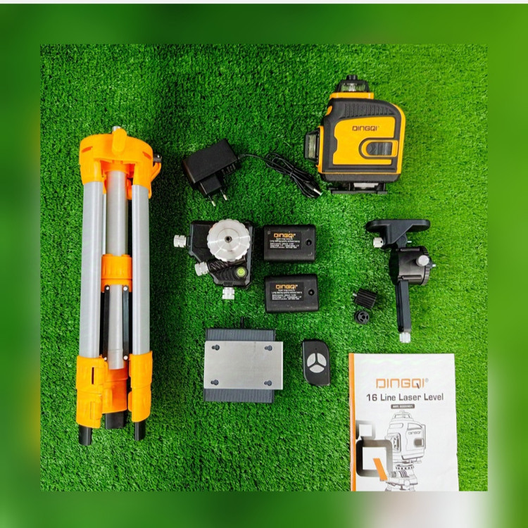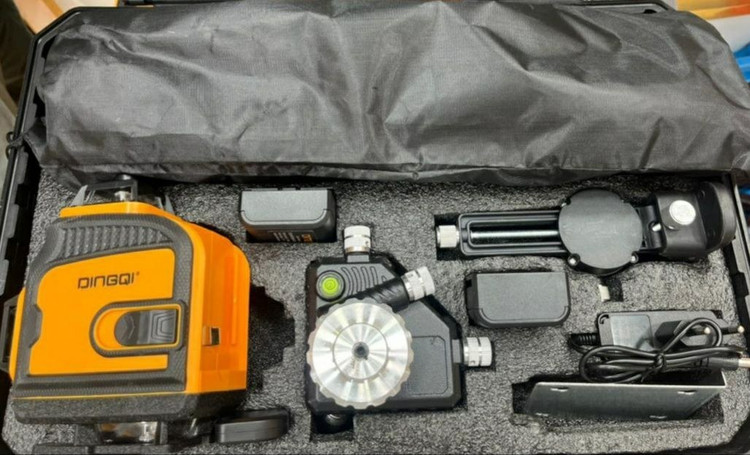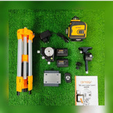 دارای تمامی وسایل همراه شامل کیف حمل، دو عدد باتری لیتیومی شارژی،پایه تراز سه حالته،ریموت،سه پایه
