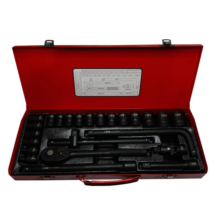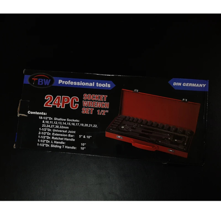 محصول فوق ست 24 پارچه جعبه بکس فشار قوی 1/2 اینچ از برند تی بی دبلیو(TBW) میباشد که از کیفیت ساخت فوق العاده عالی و صنعتی برخوردار است که از فولاد کروم وانادیوم ساخته شده است و به صورت استاندارد سخت کاری و حرارت دیده شده است که این کار موجب بالا بودن سختی این جعبه بکس شده است که در مقابل فشار و ضربه مقاومت بسیاری دارد و به راحتی میتوان در بکس بادی استفاده کرد. این محصول قطعا و بدون شک در کارهای مکانیکی و کارگاهی و صنعتی به راحتی میتواند جوابگو باشد. ست 24 پارچه TBW شامل 18 عدد سری بکس در سایز های 8-10-11-12-13-14-15-16-17-19-20-21-22-23-24-27-30-32 و شامل یک عدد آچار بکس جغجغه ای با قابلیت راستکرد و چپگرد و یک عدددسته بکس کشویی فولادی درجه یک و یک عدد دسته بکس L 2 25 سانتی متری و یک عدد لقلقه بکس و دو عدد واسطه در سایز های 5اینچ و 10 اینچ میباشد.
