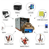 کاربری : شارژ کردن گوشی موبایل، تبلت، دوربین دیجیتال، اسپیکر و هدفون، موزیک پلیر و …, شوک دادن به باتری ماشین, مناسب برای برنامه های کمپینگ و مسافرت خانوادگی