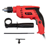 داراي کلید حالت دریل کاری ساده، چكشی براي استفاده در سطوح سخت مجهز به دسته جانبي گردان 360 درجه ارگونوميك، كنترل سرعت گردش با ميزان فشار به شاستي و کلید گردان کنترل سرعت، دارای دكمه قفل كن كليد در وضعيت روشن، دارای کلید چپ گرد و راست گرد، کابل برق 1.5 متری به همراه آچار سه نظام، خط کش تنظیم عمق، دسته کمکی که این میتواند مجموعه ای کامل در یک دریل چکشی باشد تا به کمک هنر شما در تمامی مراحل کار به شما کمک کند.